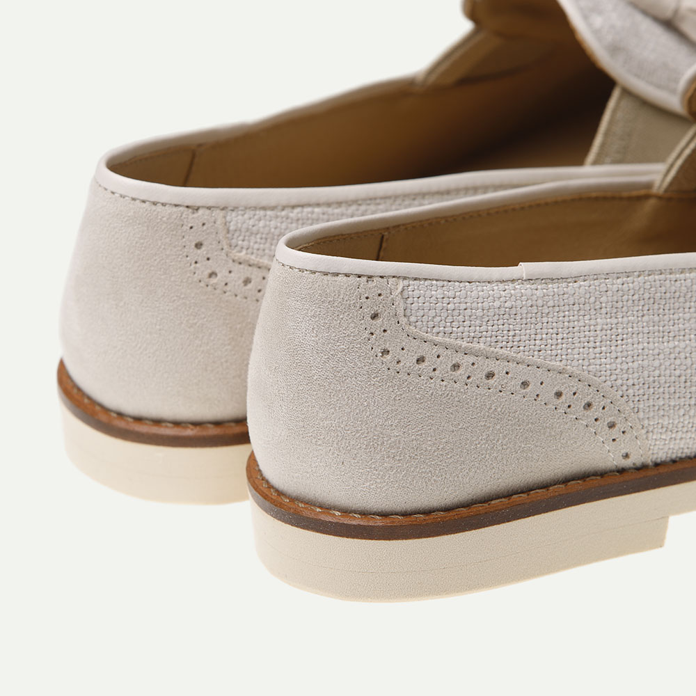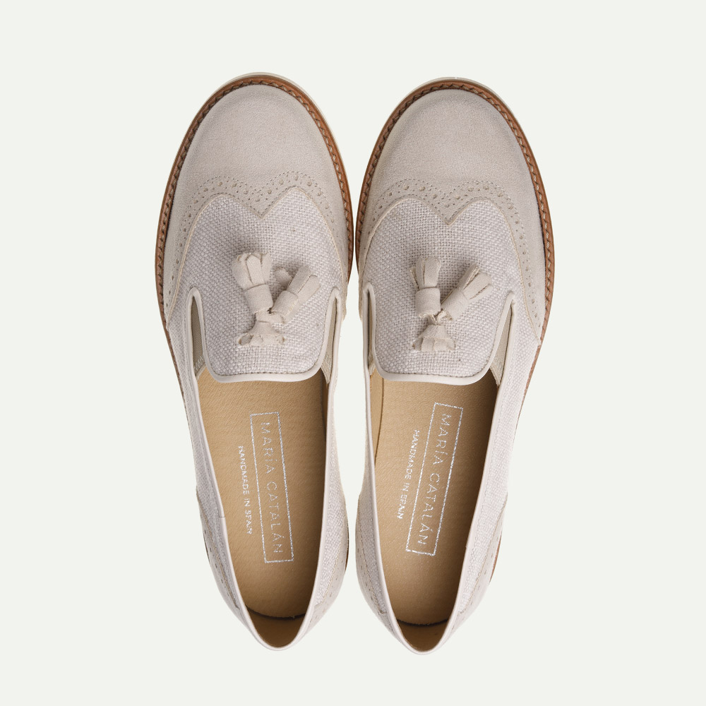 Zapato comunión niño tipo mocasín. Estilo clásico ideal para dar ese toque elegante en ocasiones especiales como bautizos, bodas, eventos familiares y comuniones. Fabricado en ante y lino crudo. Adorno con moñas hecho a mano. Fabricado íntegramente en España con materiales de alta calidad, incluye una plantilla acolchada y piso de goma para ofrecer la mayor comodidad a los más pequeños. Comodidad y elegancia para un día especial.