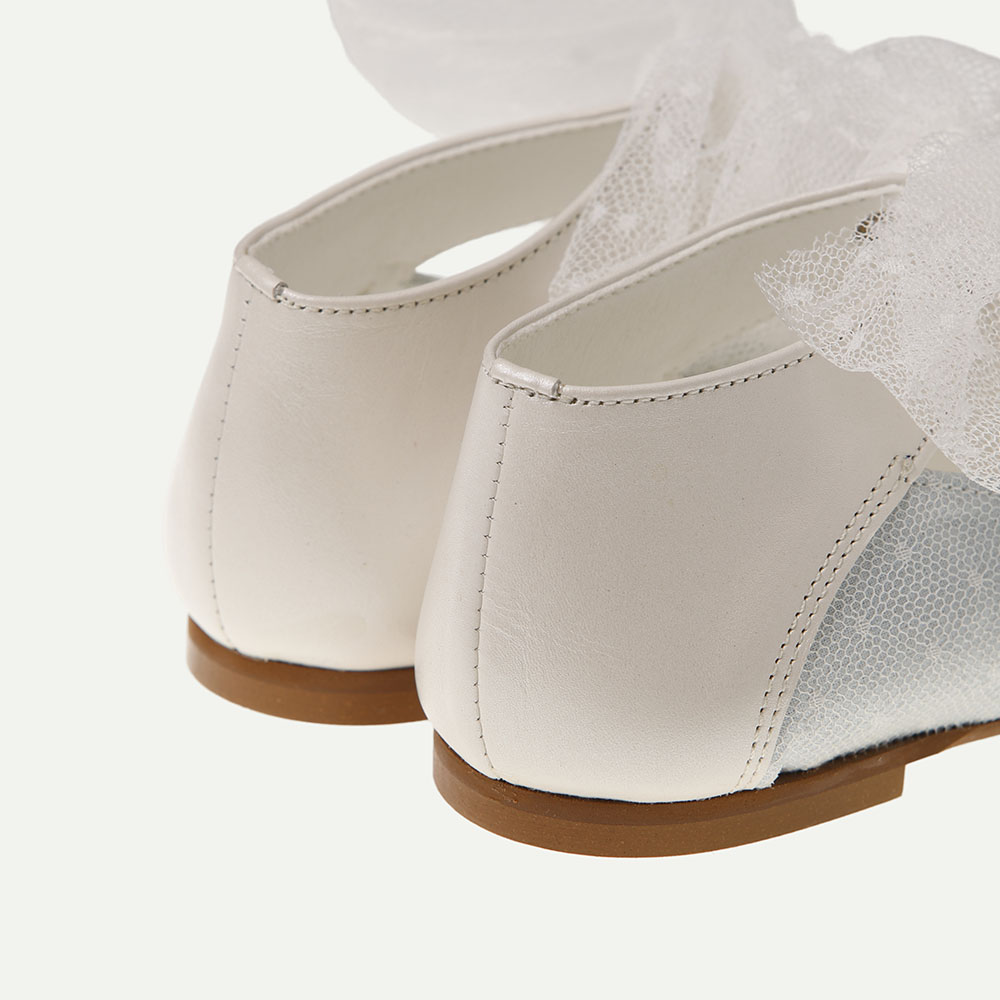 Zapato de niña de estilo Bailarina perfecto para celebrar su Primera Comunión, o eventos como bautizos y bodas. Fabricado en raso celeste y plumeti de topos encima y piel nacarada color blanco roto. Lazo de plumeti al tono. Nuestras bailarinas cuentan con plantillas acolchadas y suela de goma. Todos nuestros modelos se fabrican a mano en nuestras instalaciones de Villena (Alicante) España. Elegimos materiales de primera calidad de proveedores de la zona, diseñando cada modelo pensando en los más pequeños de la casa, ofreciendo calzado de calidad a la última.