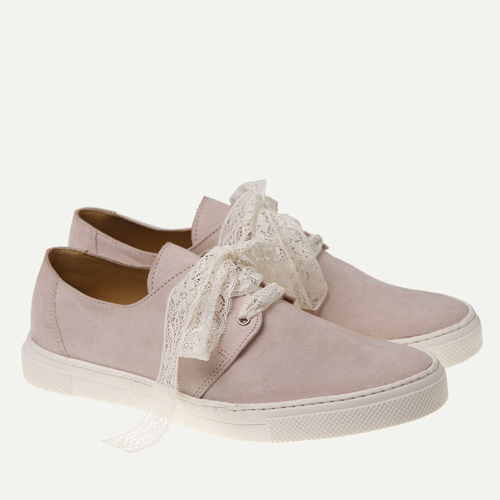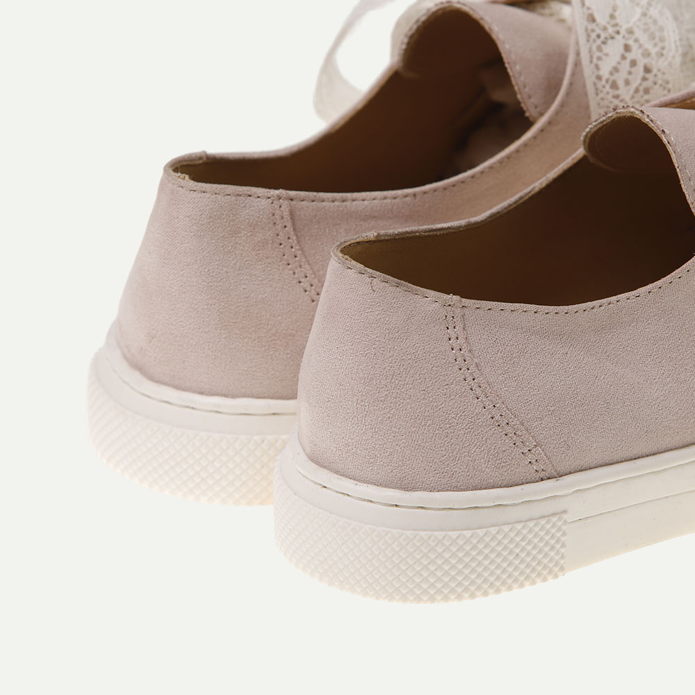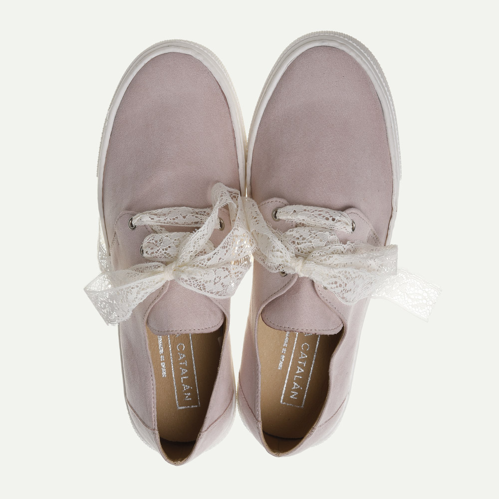 Zapato comunión niña tipo zapatilla. Fabricada en Recycled Rosa (un tejido fabricado con materias primas recicladas obtenidas de restos y prendas de textiles tratadas). Cierre con cordón de tul rosa. Piso tipo deportivo blanco. Ideal para disfrutar de los momentos especiales. Incluyen una plantilla acolchada y piso de goma para ofrecer la mayor comodidad. Calzado fabricado a mano en nuestras instalaciones de Villena (Alicante) España.