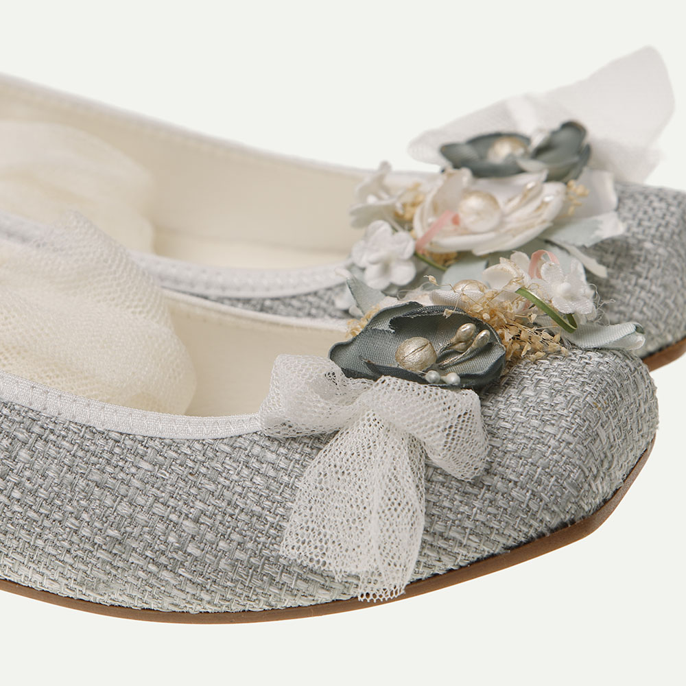 ZAPATO COMUNIÓN NIÑA CRUDO CON TUL Y FLORES